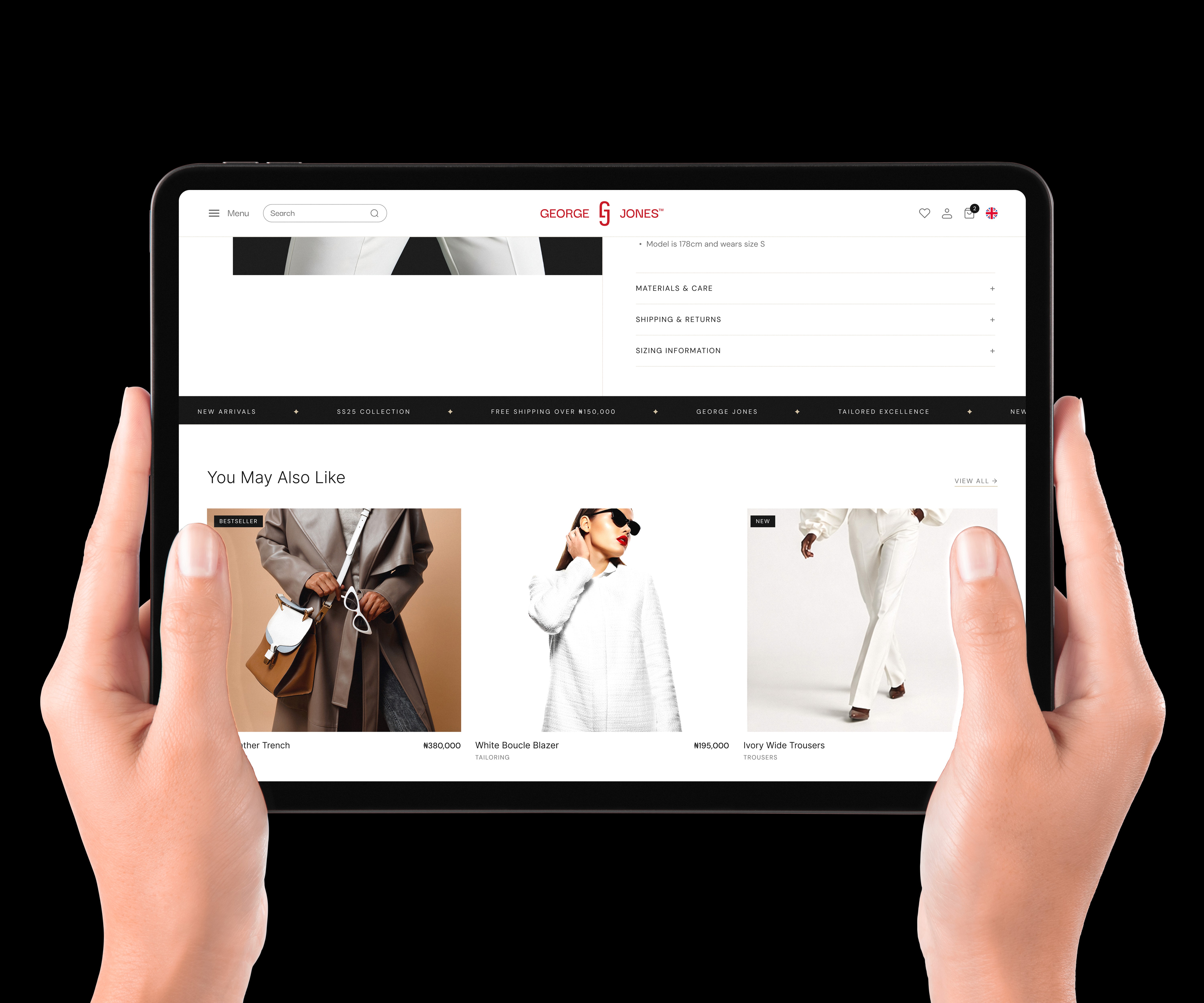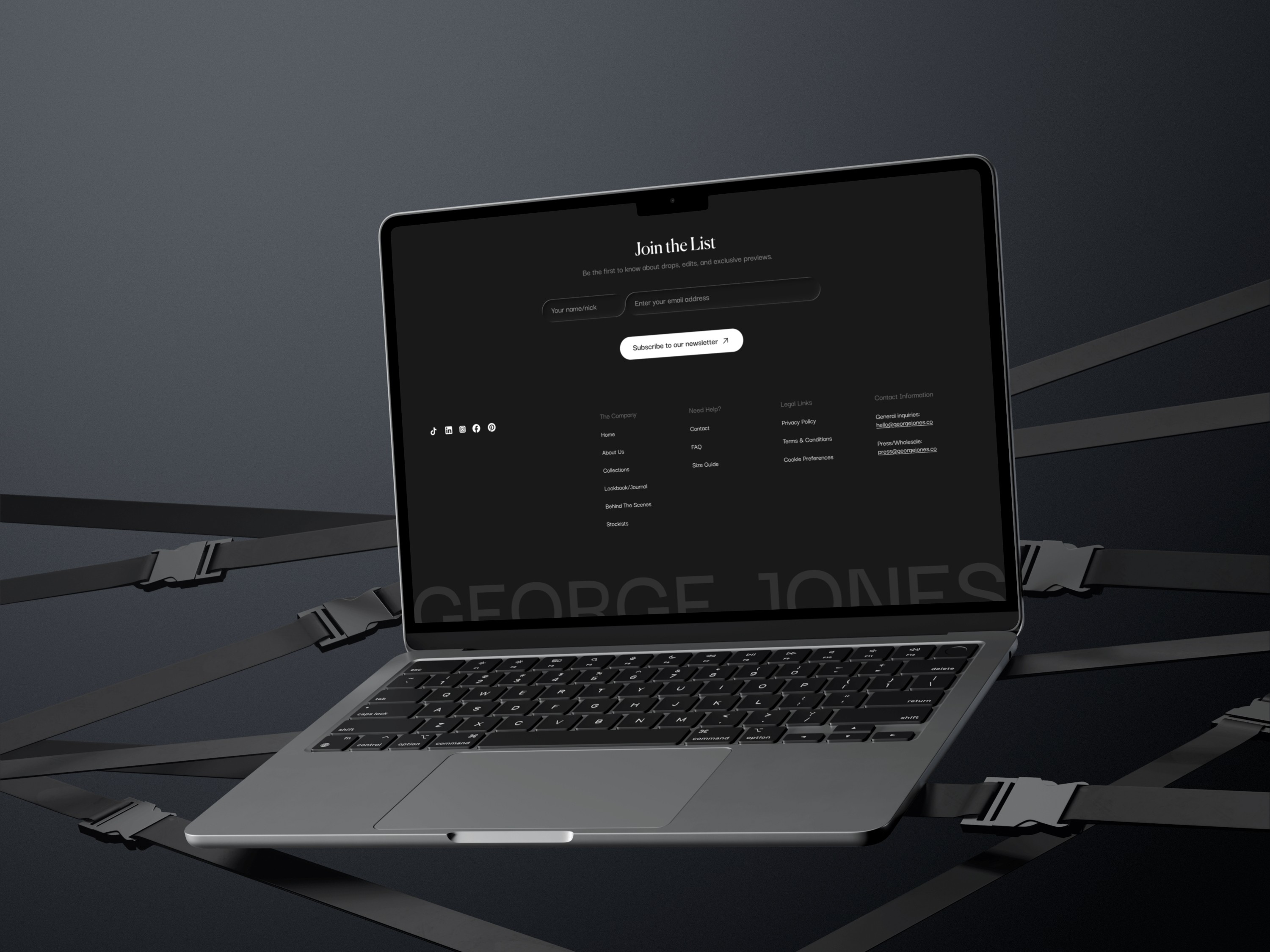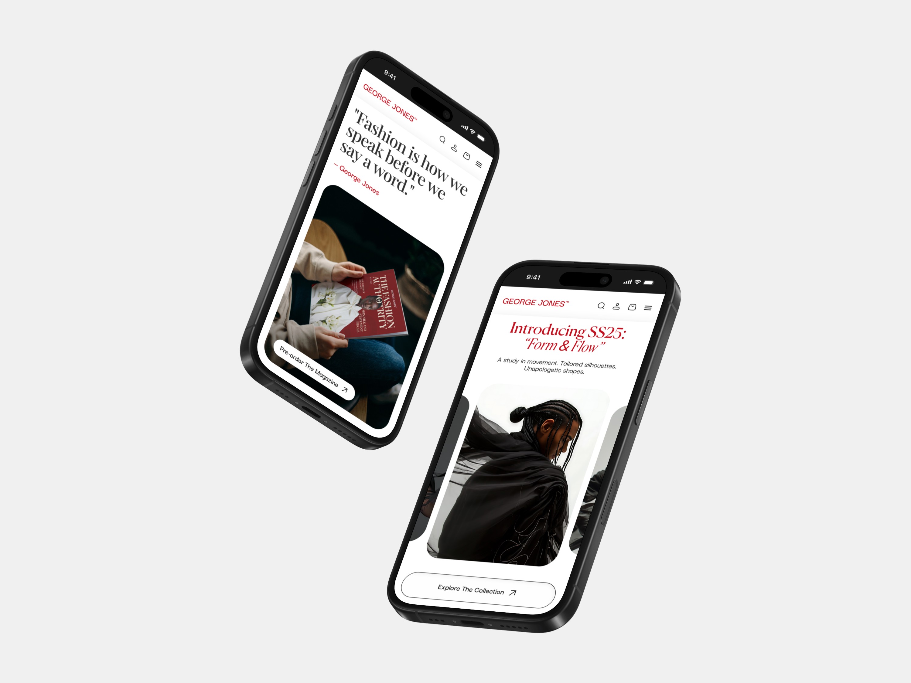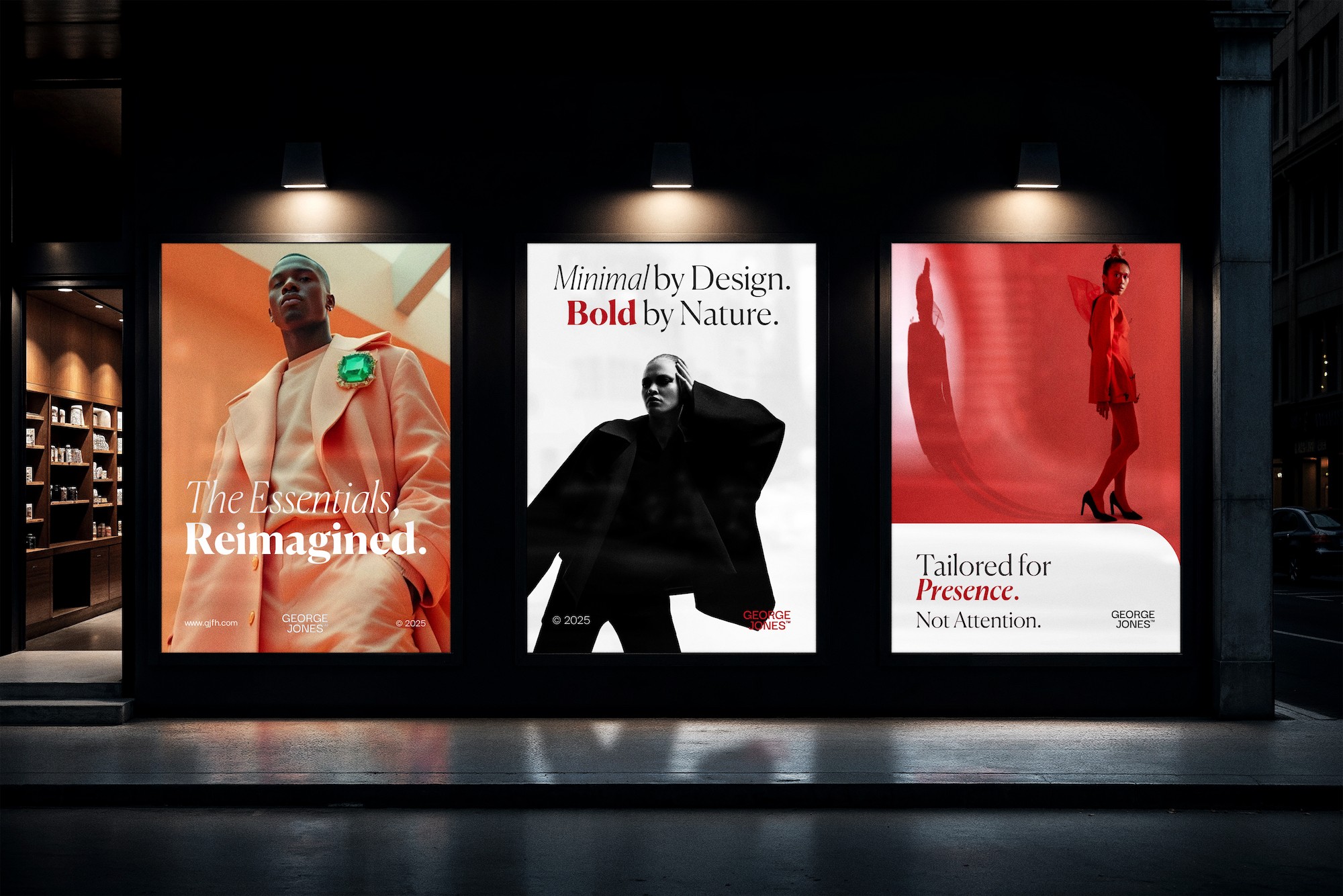 GeorgeJones is a fashion brand built around simplicity, attention to detail, and confidence. The goal was to create a look that feels premium and trustworthy right from the start, even though the brand is new. The whole design language/system was kept clean and intentional. The idea was to make the brand feel calm, strong, and easy to recognize wherever people see it, whether online or in real life. I handled the entire design, starting with a simple GJ symbol that acts as the face of the brand and can be used across clothes, packaging, and online platforms. I chose clean fonts, balanced colors, and simple, high-quality images to support the look. The design was then applied to boxes, tags, business cards, and the website. The website itself was kept very simple so the clothes stand out and people can easily browse and buy. Everything was designed to give the same feeling, a quiet, confident kind of luxury that feels natural and easy.